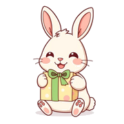 Bring cheer to your walls with this funny rabbit digital art, featuring a happy bunny with a gift. Instantly download and print this charming artwork, a wonderful funny gift.